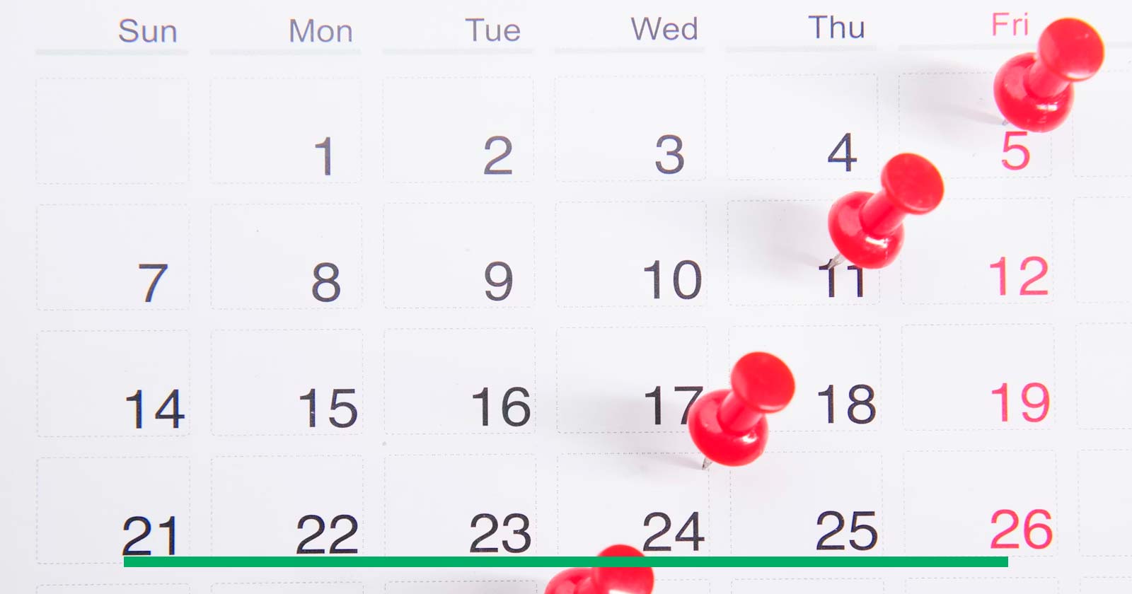 Semanas del año 2026, días correspondientes